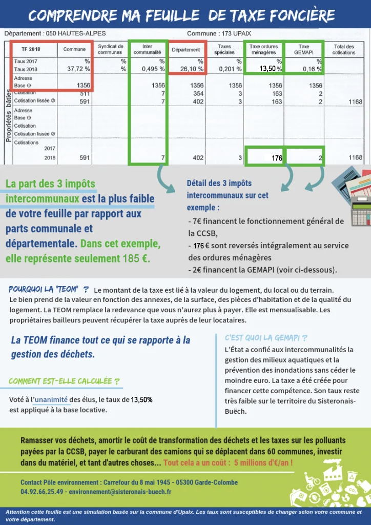 La taxe foncière 2018 arrive avec quelques nouveautés : l’apparition de la Gemapi, de la Taxe d’Enlèvement des Ordures ménagères (TEOM), et de la part intercommunale. Explications.
